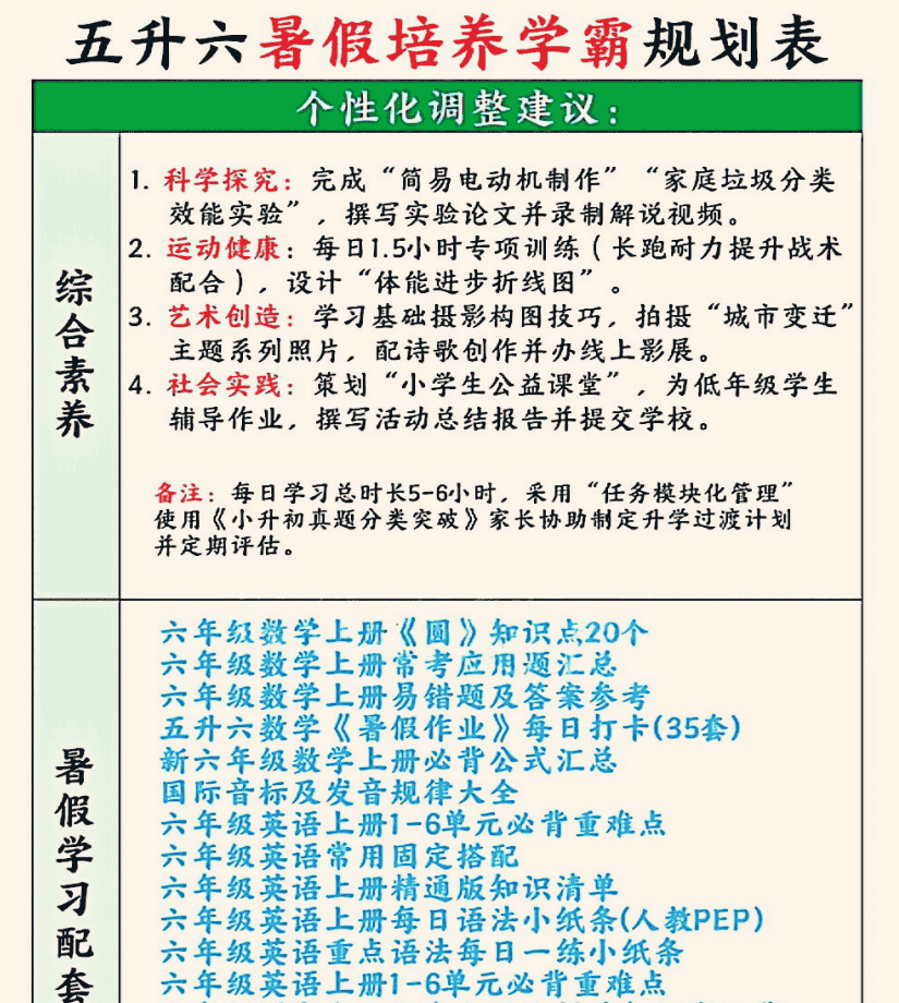 1-6年级暑假培养学霸规划表 9M PDF