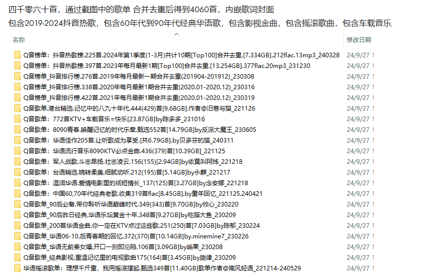 - 1车载u盘必备,3068首高品质歌曲合集,种类丰富 mp3/wav/23.9GB