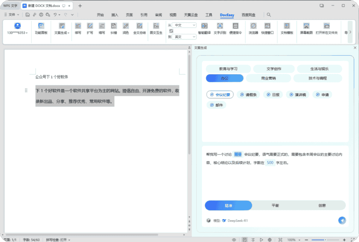 【PC】DocEasyOfficeAI_v0.6.0 解锁 Office / WPS 的 DeepSeek 功能/打工人必备【15M】