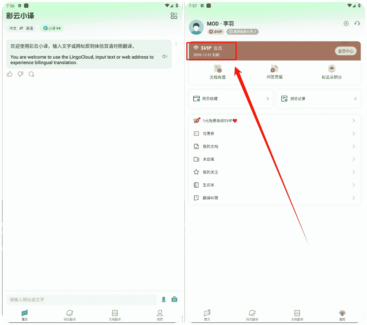 【安卓】彩云小译APP(网红翻译软件) v4.5.1 解锁永久VIP会员版/支持同声传译/支持文档翻译【53M】