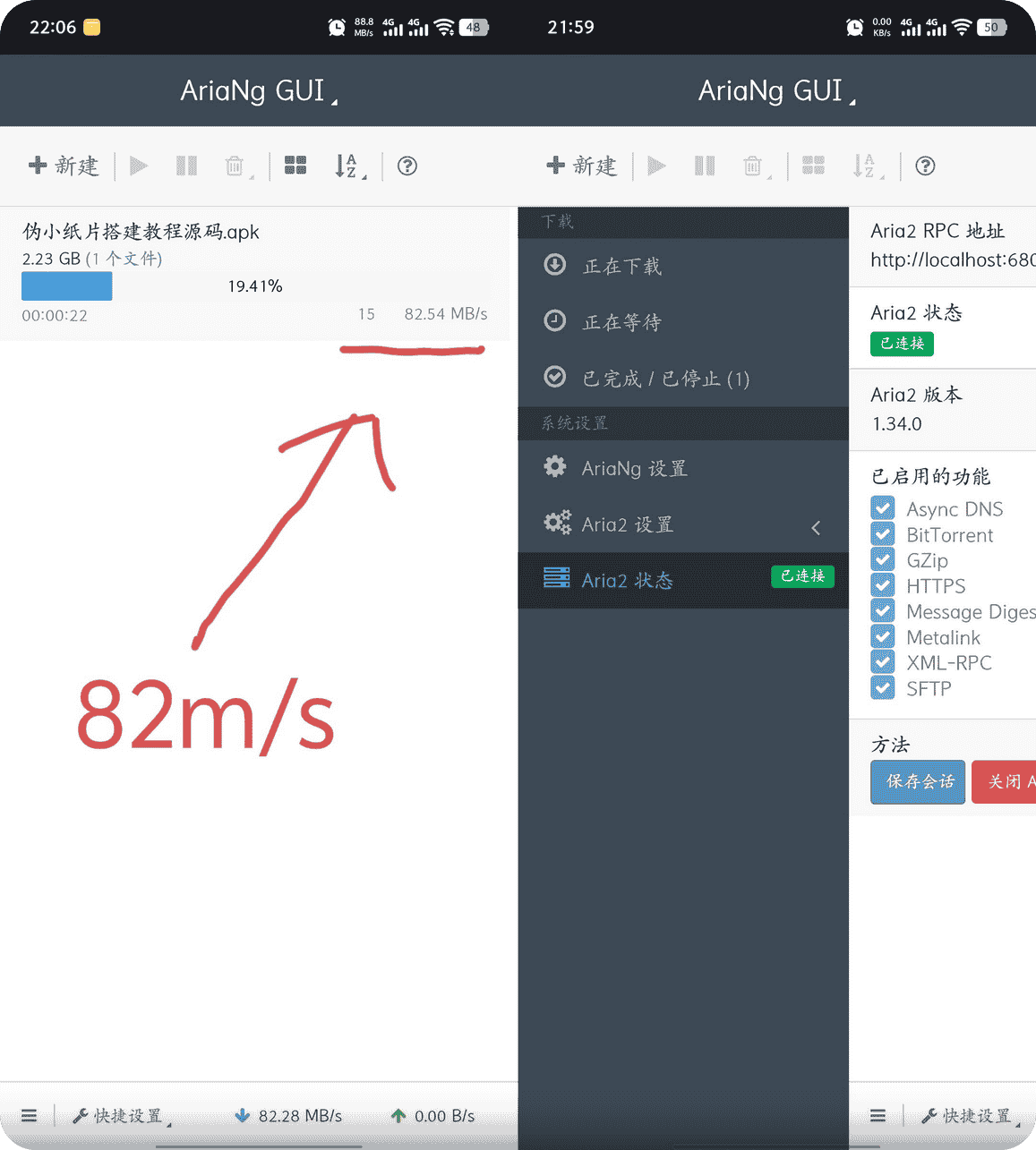 【安卓】AriaNg手机版 v1.1.1 百度下载不限速,亲测80+m/s(附使用教程)【218M】