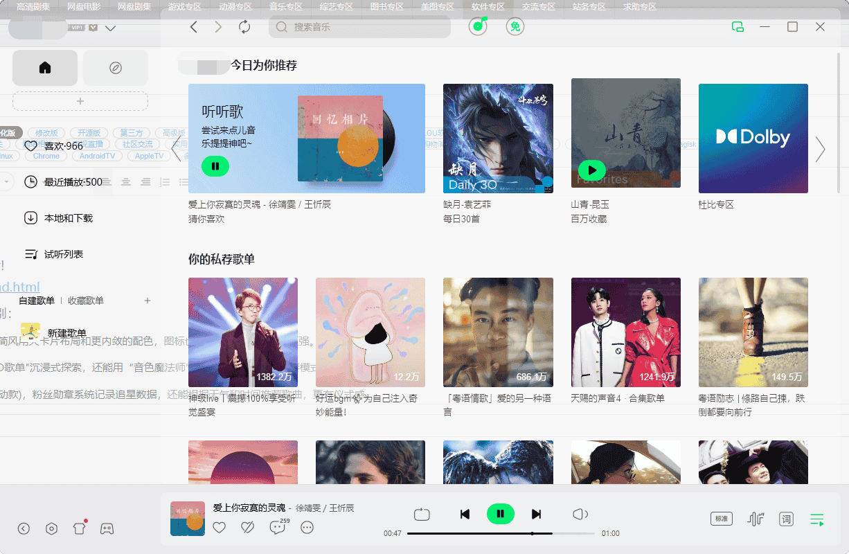 • 玩法更个性:支持DIY播放器模板(比如城市律动款),粉丝勋章系统记录追星数据,还能根据天气和时间推荐歌曲,更有仪式感。