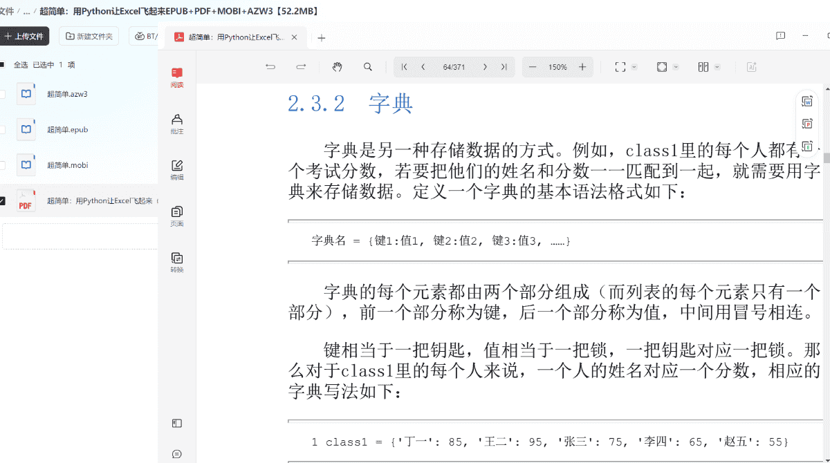 超简单:用Python让Excel飞起来EPUB+PDF+MOBI+AZW3【52.2MB】