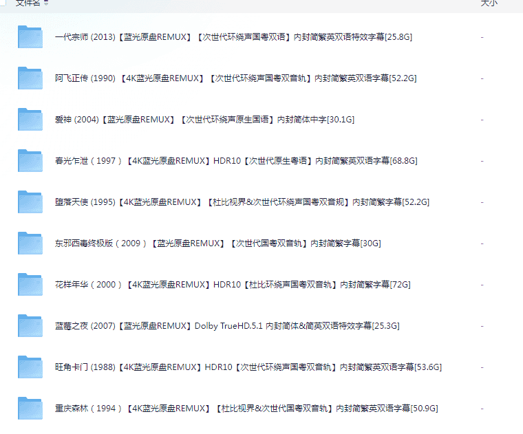 4K REMUX 蓝光BluRay 爱情 动作 悬疑 冒险 剧情 中国香港