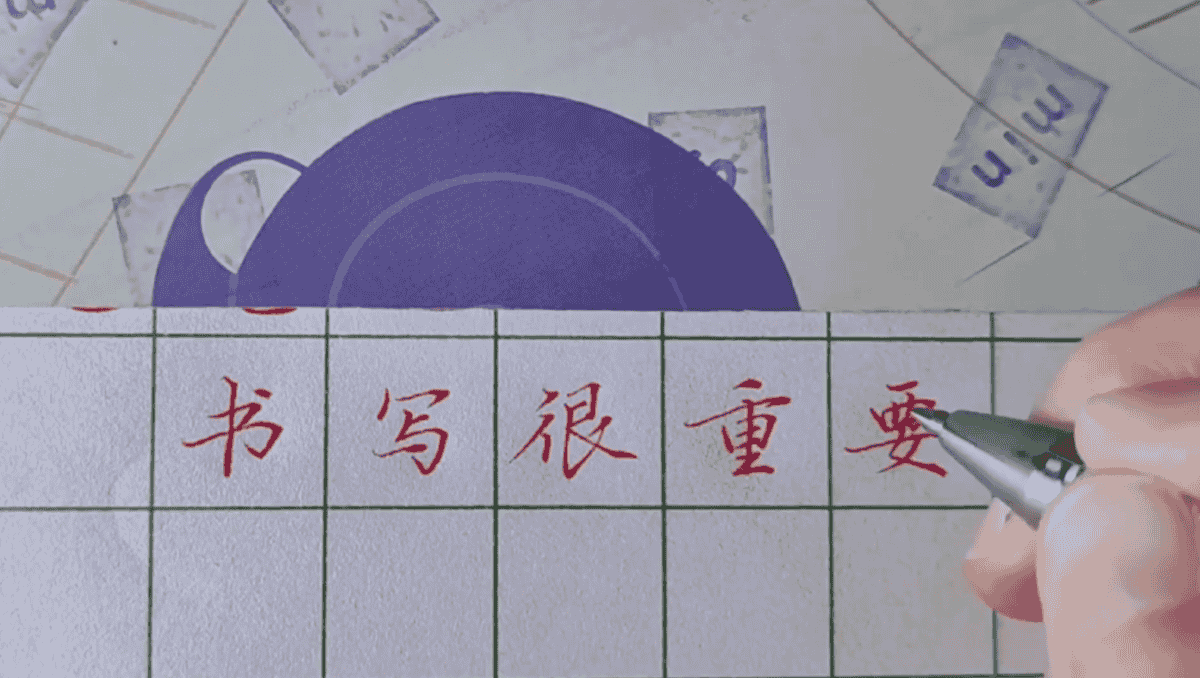 🔹 竖线和捺:用食指第一节发力,往下拉,写竖线和捺时会更顺手。