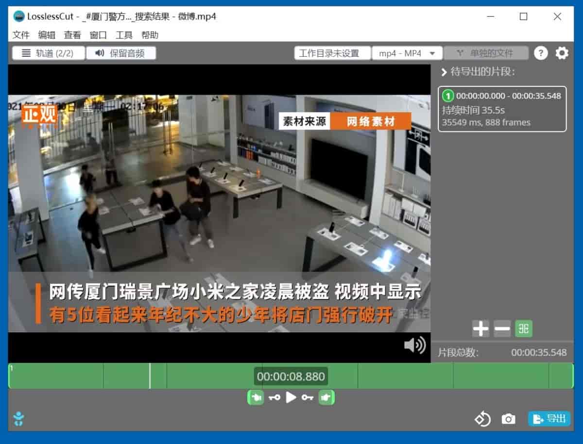 无损切割大多数视频和音频格式