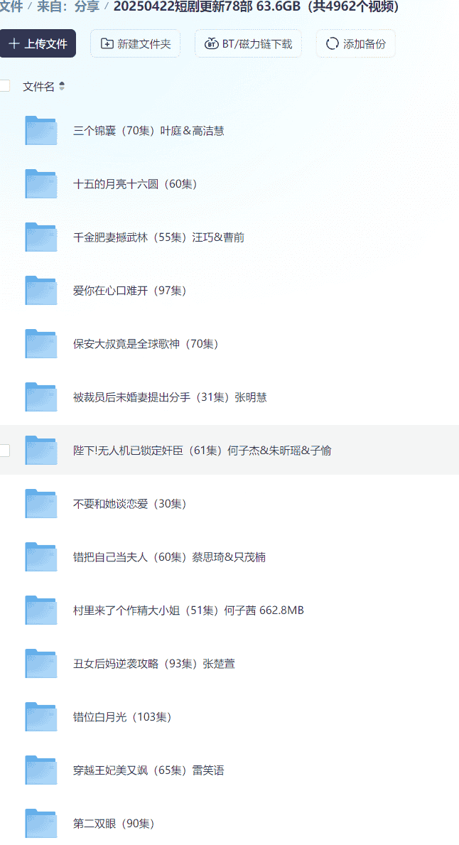 【短剧】20250422短剧更新78部  63.6GB(共4962个视频)