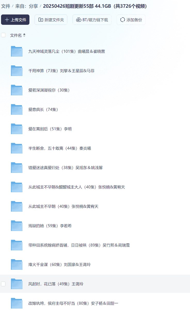 【短剧】20250426短剧更新55部 44.1GB(共3726个视频)