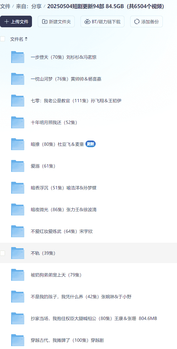 【短剧】20250504短剧更新94部  84.5GB(共6504个视频)