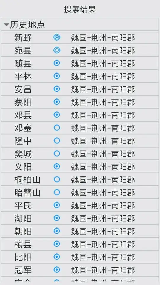 2. 春秋战国、秦汉、三国、西晋、隋唐宋和元明清支持地点搜索并定位。