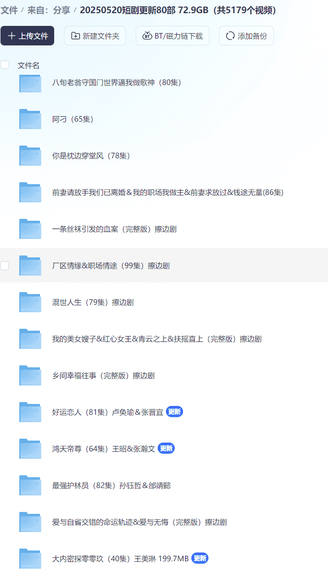 【短剧】20250520短剧更新80部  72.9GB(共5179个视频)