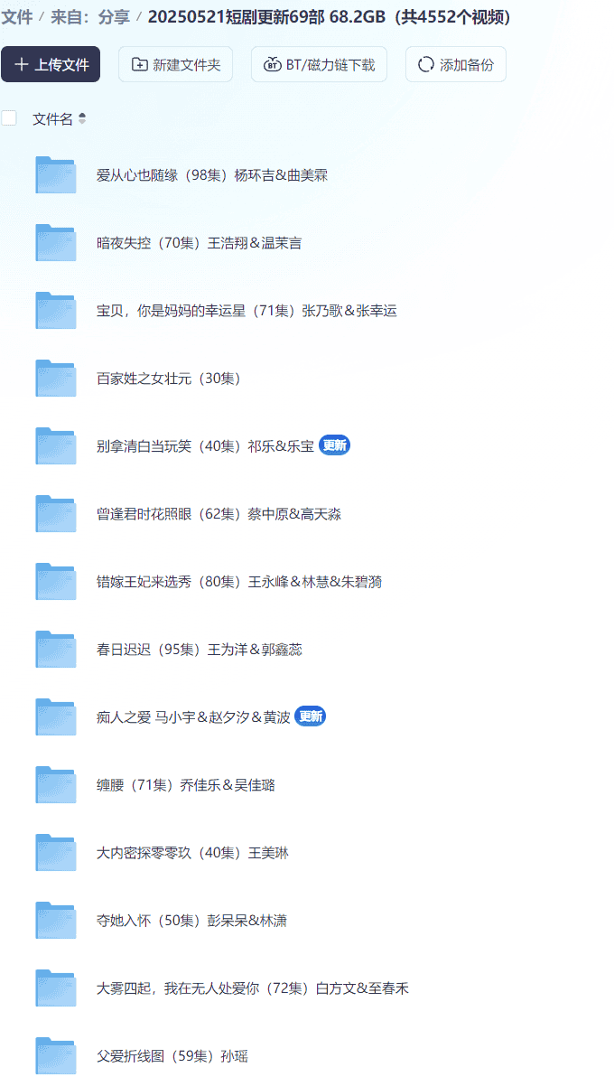 【短剧】20250521短剧更新69部  68.2GB(共4552个视频)