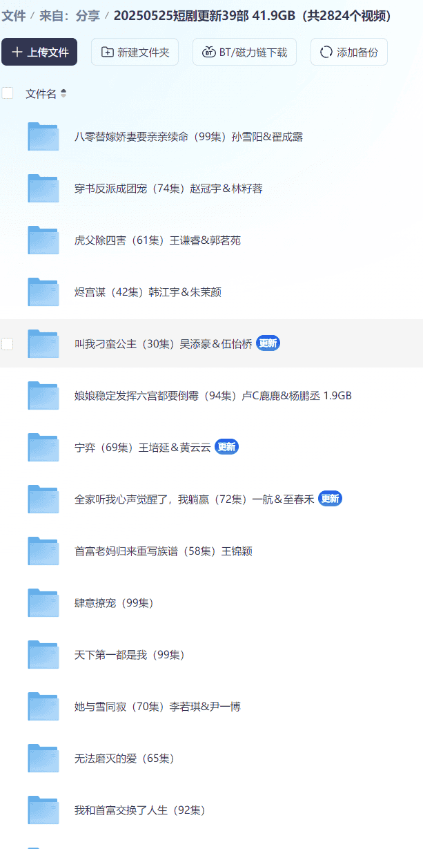 【短剧】20250525短剧更新39部  41.9GB(共2824个视频)