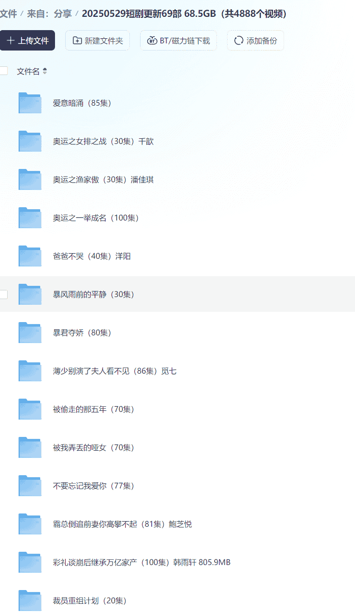 【短剧】20250529短剧更新69部 68.5GB(共4888个视频)