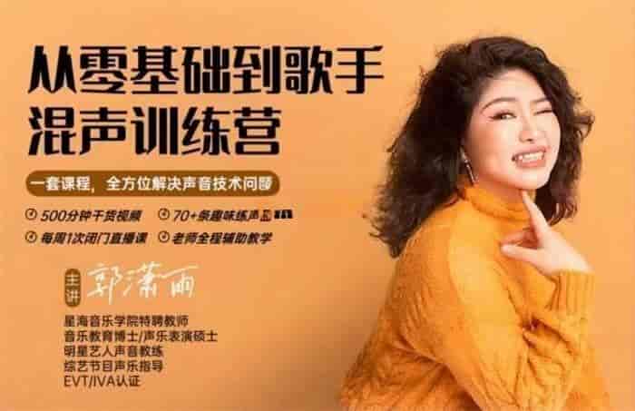 唱歌总跑调?高音上不去?声音没特色?别担心,郭潇雨老师的从零基础到歌手混声训练营来拯救你的“歌唱生涯”!这里没有高冷的音乐理论,只有接地气的实用技巧。500分钟视频、72条练声曲、12场直播课,让你在轻松愉快的氛围中,一步步成为K歌之王。不管你是小白还是大佬,都能在这里找到属于你的声音魔法。