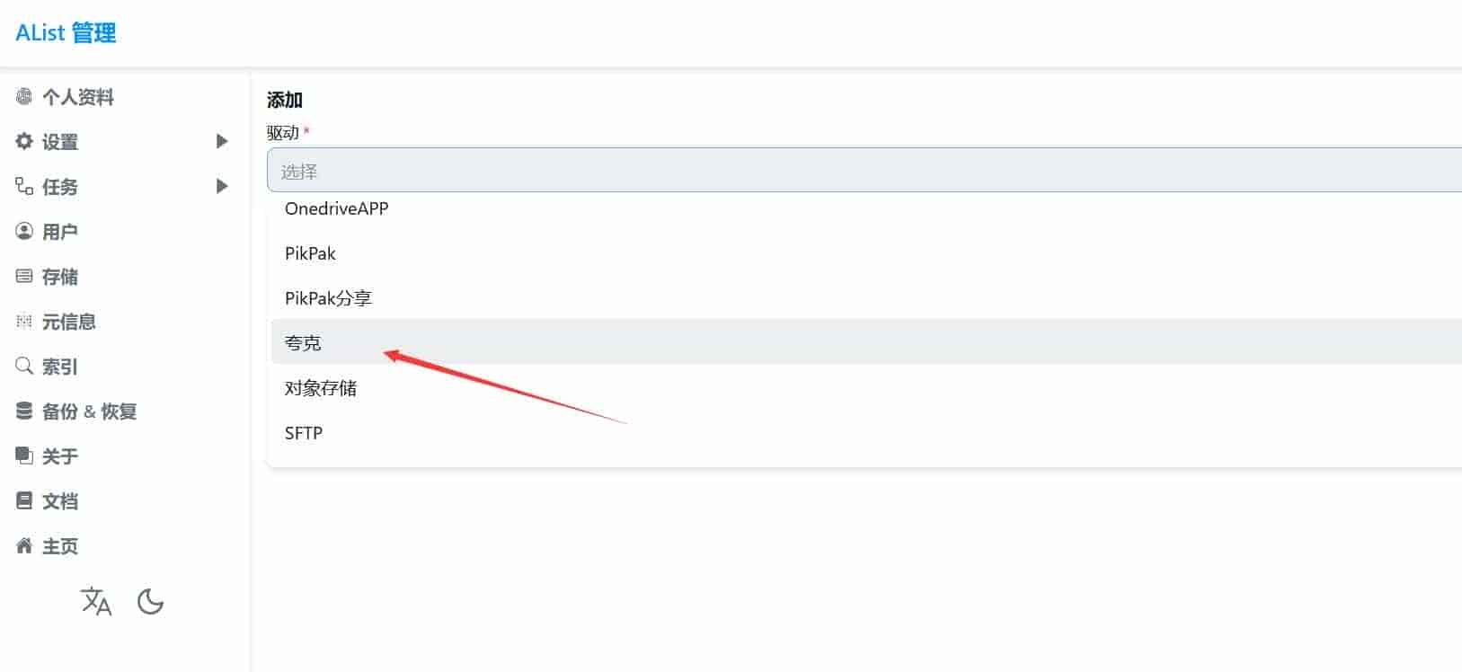 然后开始添加网盘
