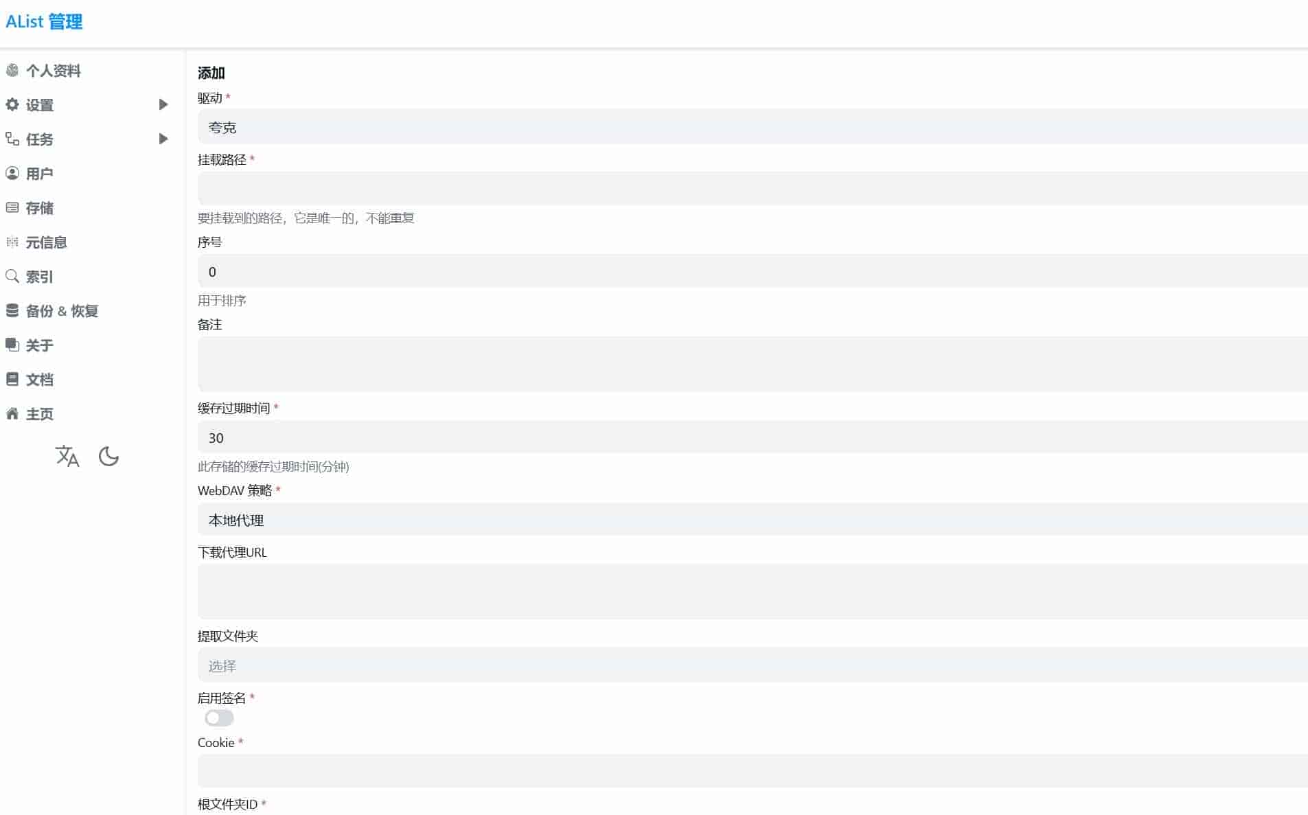 PS:这里可以将缓存过期时间设置为0,这样转存文件到网盘后会实时更新到alist