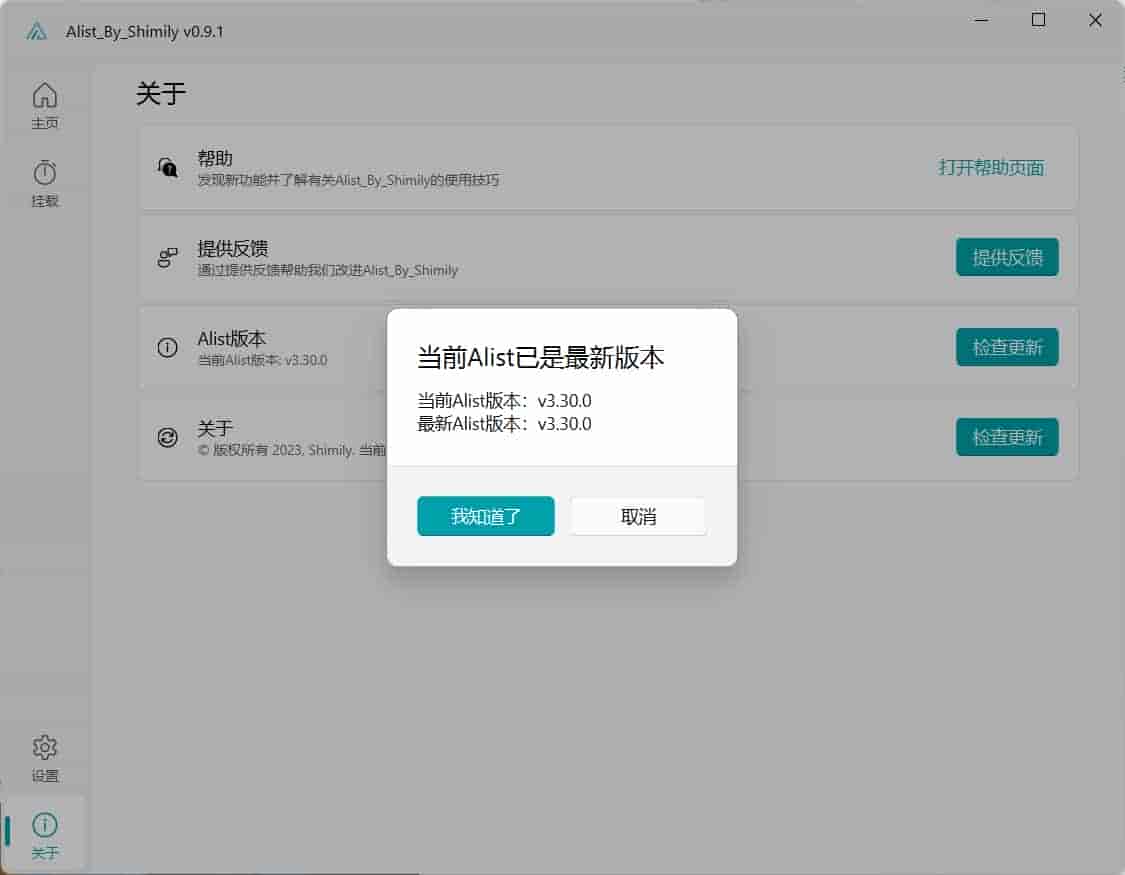 在Alist版本右边点击检查更新,检查目录是否正确。