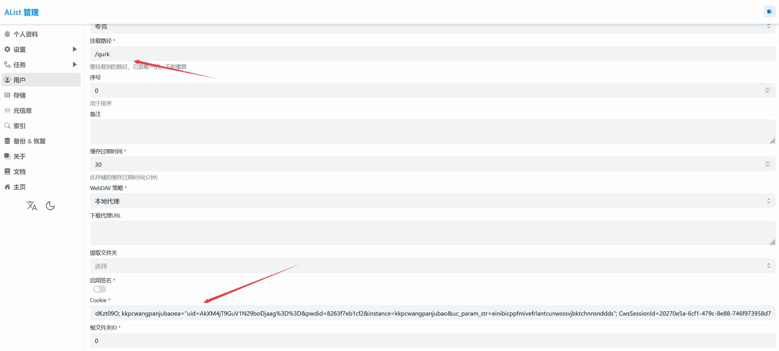 这里我们只需要配置两项即可,挂载路径和Cookie,