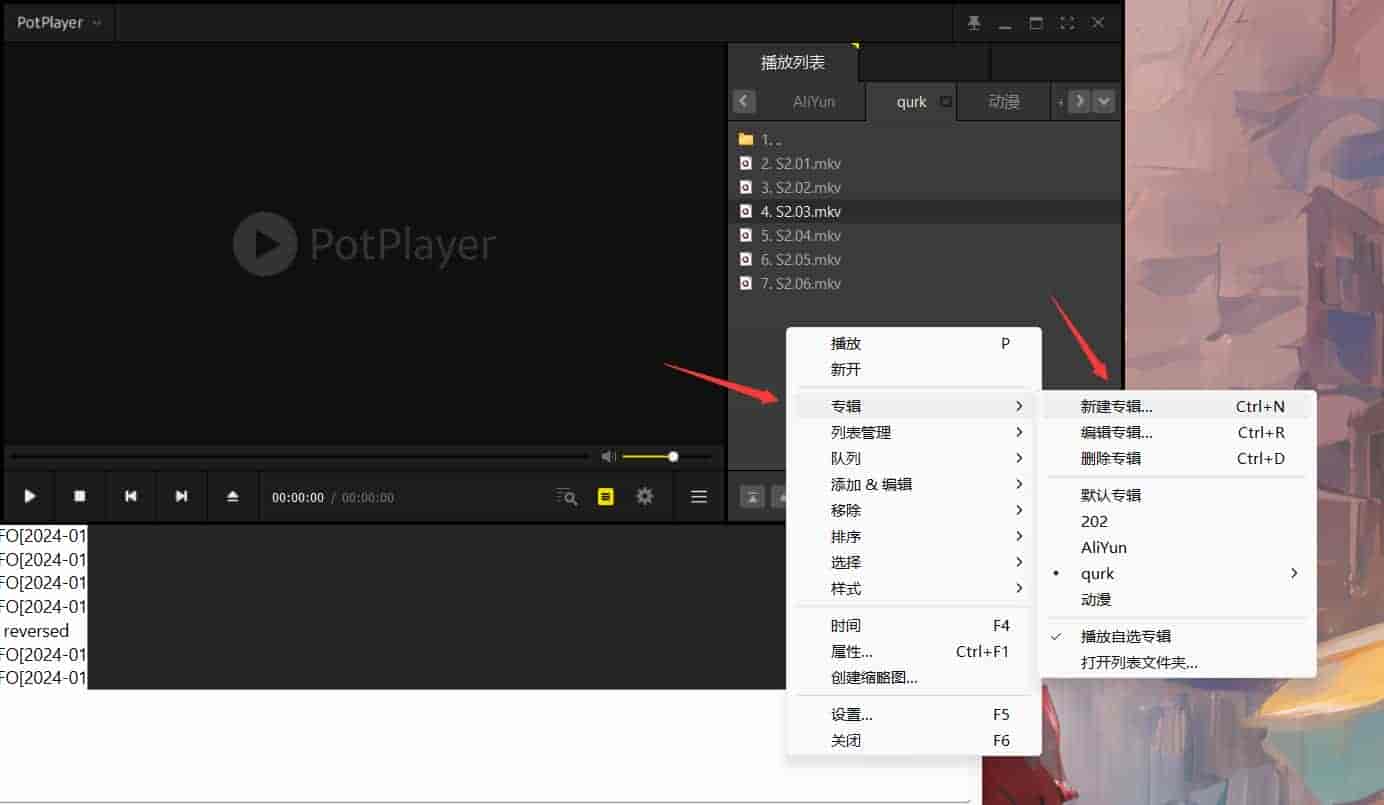 下载potplayer播放器,在播放列表空白页右键 专辑>新建专辑