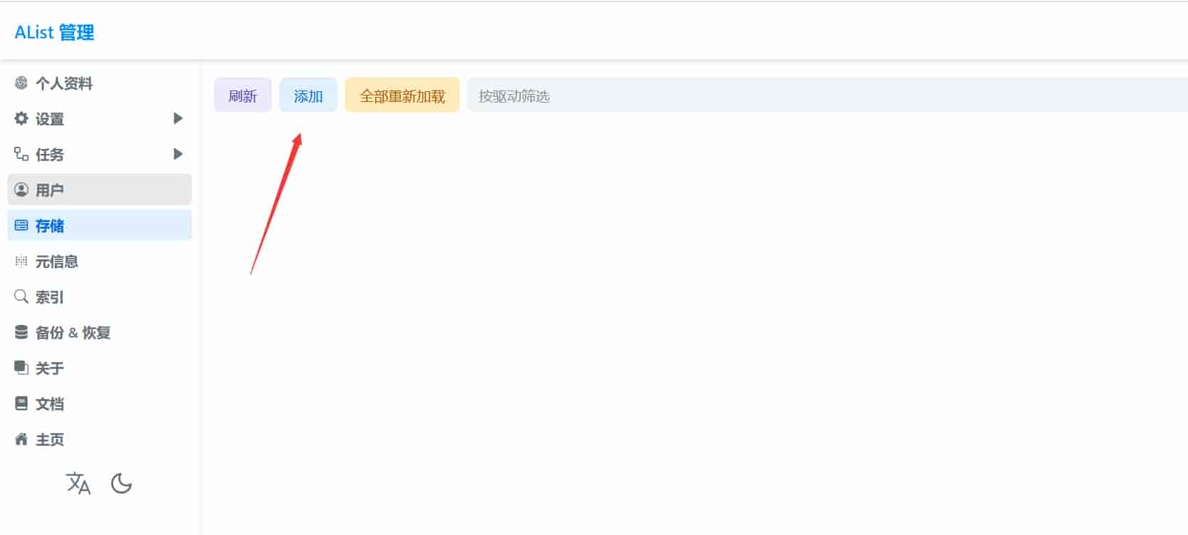进入左侧存储,然后点添加