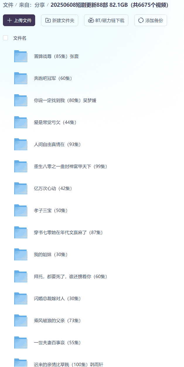 【短剧】20250608短剧更新88部 82.1GB(共6675个视频)