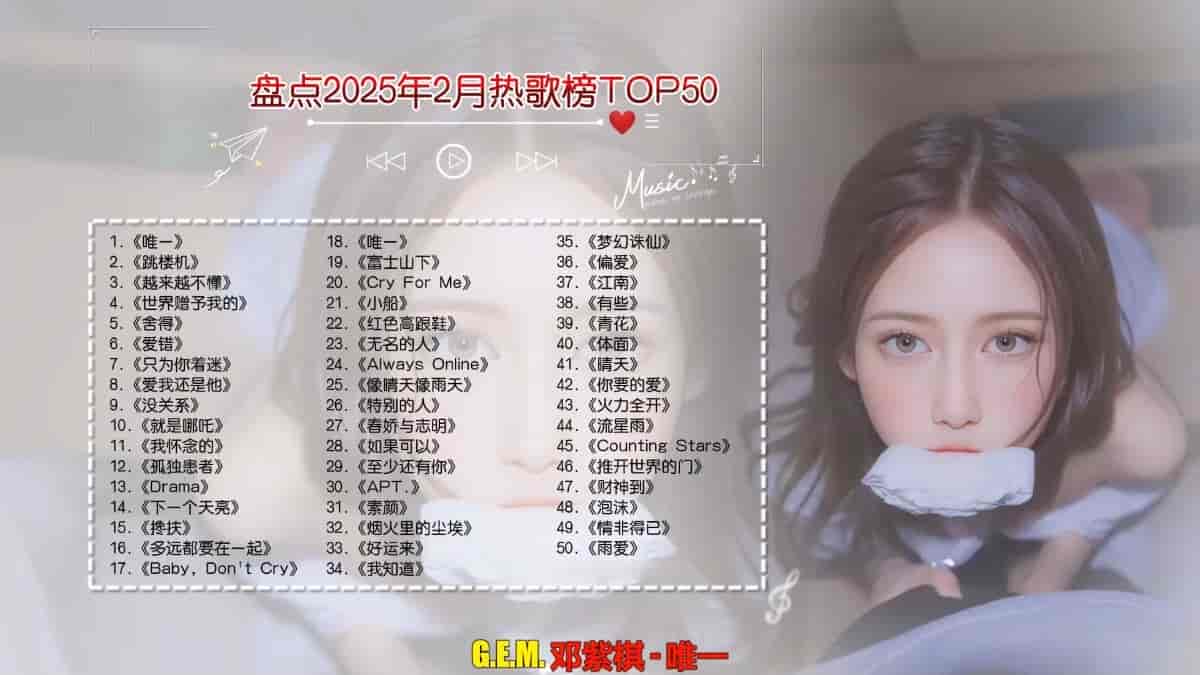 【盘点2025年2月热歌榜TOP50合集带歌词】无损音质附带动态壁纸[FLAC/1.6G]